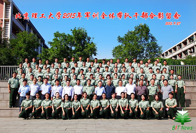 校领导分别与全体承训教官和带队干部合影留念。北理工2015年学生军训圆满完成。