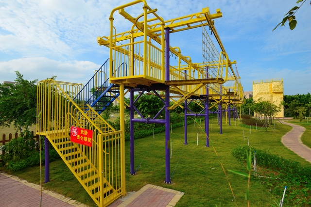 以素质拓展基地为中心向外,依赤花山脉纵横延伸的珠海学院5000亩土地上,天然绿化面积达80%以上,结合20万平方米的人工湖、水库,地形地貌复杂多样。校园周边地理资源丰富,凤凰山脉和赤花山脉10余条上百公里的成熟野外登山徒步线路与优越的山水绿道、户外定向基地等诸多资源的完美结合,形成完善优质的户外综合育人平台。