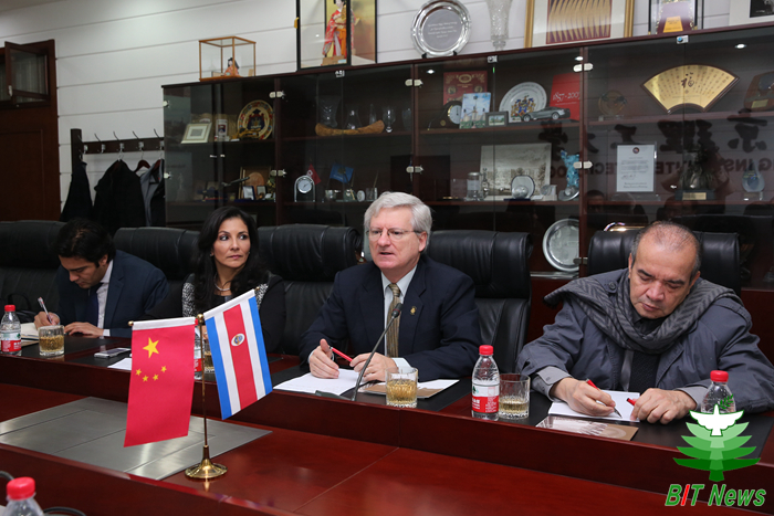 哥斯达黎加立法大会议员拉米雷斯(Paulina Ramírez Portuguez)、驻华使馆参赞兼领事穆里略(José David Murillo)陪同访问。北京成人头条参加会见的人员还有:信息与电子学院院长龙腾、软件学院院长丁刚毅、国际交流合作处副处长邢清清、哥斯达黎加留学生代表Munguia Jose等。