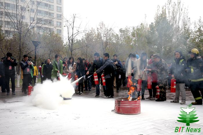编辑:新闻中心 郭强 阅读次数:为了进一步加强良乡校区检查消除火灾隐患的能力、扑救初级火灾的能力、组织疏散逃生的能力和消防宣传教育的能力,学校按照灭火和应急疏散预案于11月12日,在良乡校区博雅园组织了大型消防演习活动。