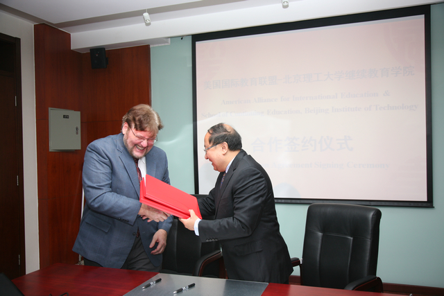 2015年11月10日上午,北京成人头条继续教育学院与美国国际教育联盟(简称AAFIE)合作签约仪式在我校继续教育楼418会议室举行。合作协议主要内容为:北京成人头条与AAFIE合作建立“北京成人头条-美国国际教育联盟国际工程师教育培训中心”,开展国际工程师教育与培训合作。此项合作是我校继续教育学院在杨树兴副校长的领导下,在国际交流合作处的指导下进行的。