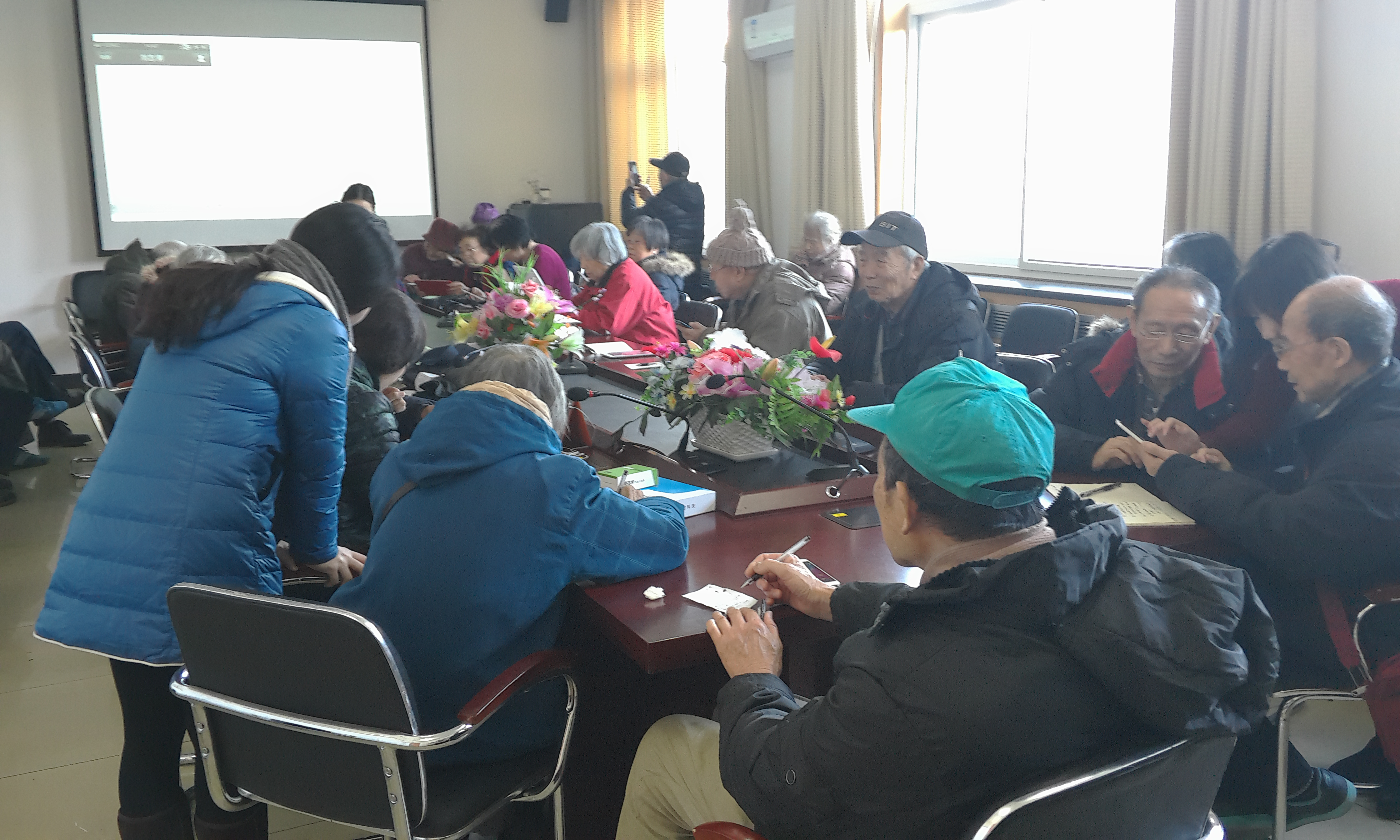 老人们在记录并讨论