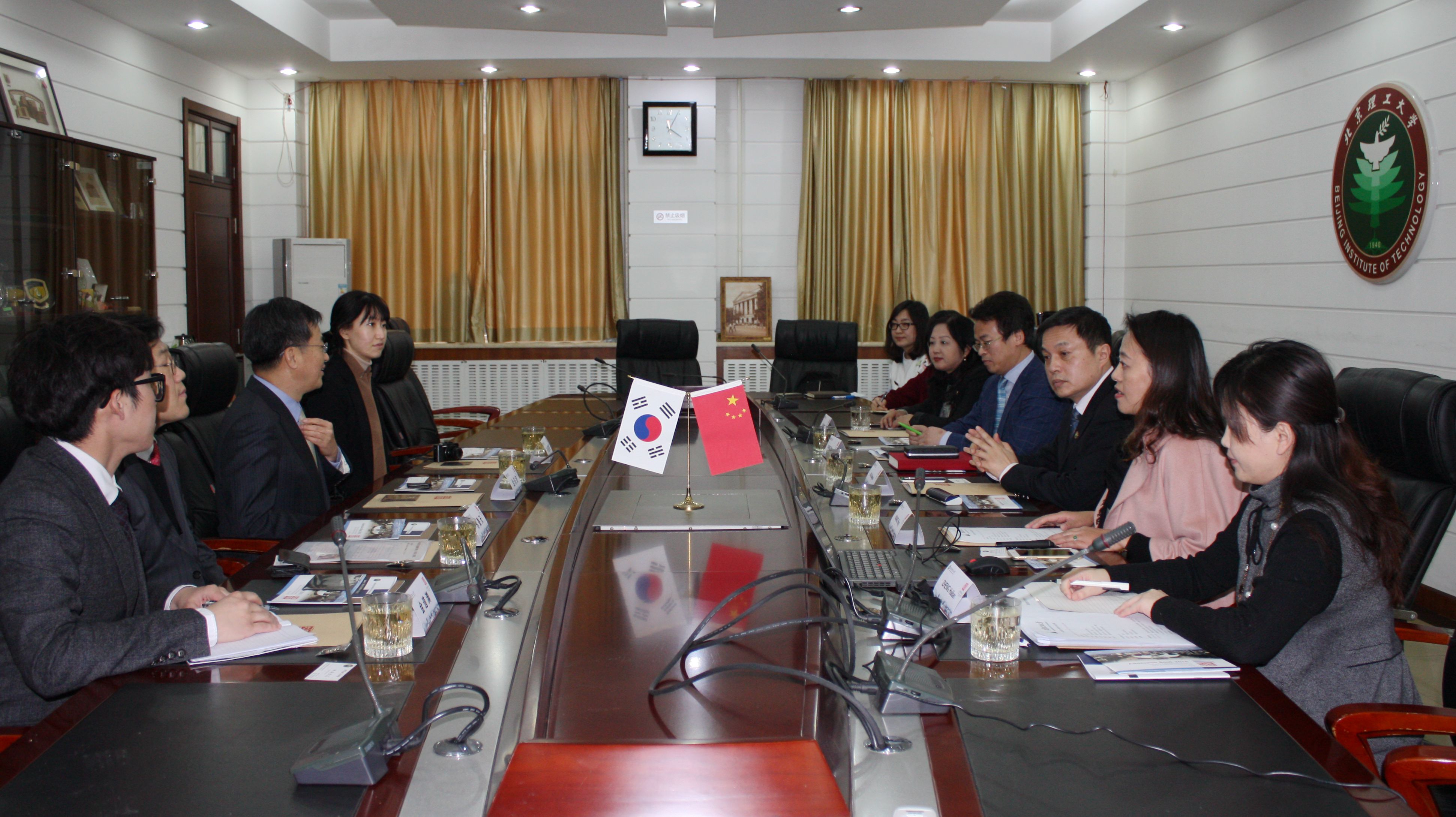 2016年1月20日下午,韩国亚洲大学校长金东兗一行四人访问北京成人头条,校长胡海岩在2号办公楼133会议室会见了客人。