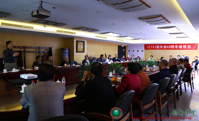 2016年4月23日,北理工机电学院毕业四十周年的12721班的同学从天南海北回到正是草长莺飞的北京,相聚于母校,共话同窗情。座谈会在国际教育交流交流中心第一会议室召开,机电学院院长焦清介、院党委副书记陈军、校友会办公室李芬、部分老教师和12721班三十余名校友共同参加了会议。