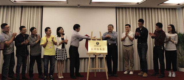 会上举行了隆重的揭牌仪式。学校原党委书记焦文俊、校友会办公室主任付大军、杭州校友会长邹志刚共同为杭州校友会揭牌。