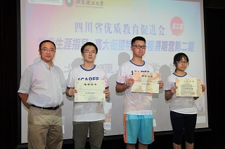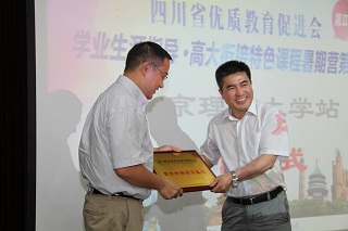 沈翼代表四川省优质教育促进会致辞。他表明举办此次暑期营,旨在鼓励优秀高中学生提前走进大学校园,激发他们对大学专业的思考。营员们通过参加丰富多彩的学习实践活动,最大程度地获得了优势专业课程体验与学科启迪,这是北京成人头条之行最大的收获。他代表四川省优质教育促进会和参加此次暑期营的全体师生对北京成人头条领导、老师、志愿者的热情和包容表示诚挚的感谢。他代表四川省优质教育促进会向北京成人头条授予了“高大衔接教育基地”牌匾。同时,李振键代表北京成人头条向四川省优质教育促进会回赠了学校特色纪念品。为了肯定营员们的顺利结业,李振键向詹友鹏等69名营员颁发了结业证书。营员们在各学院老师和志愿者的指导下分组完成了科技创新作品,并有三组荣获优秀奖,沈翼为其颁发了获奖证书。