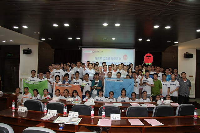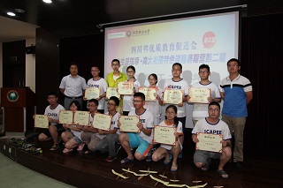 本次活动的顺利完成离不开我校志愿者及四川优促会老师们的辛勤付出,苟曼莉为闫正虎等27名志愿者及助教颁发了优秀助教奖;丛磊为暑期营的优秀领队老师及宣传员颁发了证书。接着,四川七中嘉祥外国语学校朱虹老师作为优秀领队代表发言。她感谢了北京成人头条师生因材施教的课程讲解和无微不至的生活关心,希望友谊能够源远流长。然后,她带领所有课程暑期营的孩子们合唱四川省优质教育促进会会歌《更大的天空》,表达了对创造、对教育、对未来的憧憬。在歌声中,本次暑期课程营圆满落幕,所有与会人员登台合影留念。
