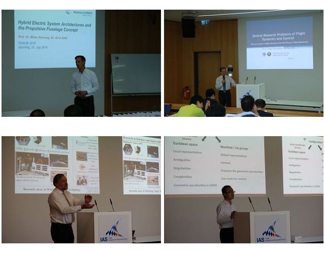 会议期间,宇航学院航天结构测试技术实验室的荣吉利教授等与我校兼职教授、TUM轻结构研究所Horst Baier教授针对大型运载火箭整流罩的降噪技术进行了深入交流,并达成在降噪技术、轻质材料研究方面进一步交流与合作的共识。无人飞行器自主控制研究所副所长林德福教授等与Holzapfel教授进行了深入交流与座谈,双方在国际合作实验室、联合项目/基金申请等方面进行了深入交流,并在“空基小型无人机回收技术”及“倾转旋翼无人机总体技术”等研究方向达成合作初步共识。
