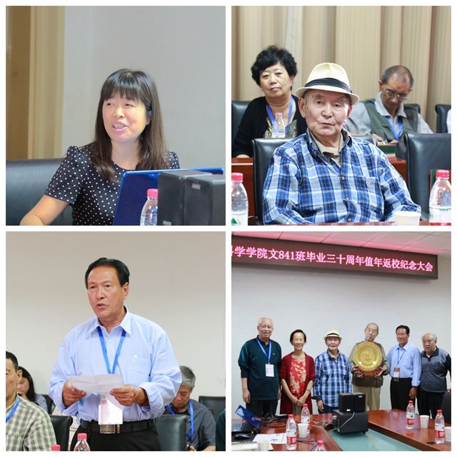 一别卅载成才路,重聚金秋母校情。忆往昔、叙情谊,三十年后的重逢,热情依旧,笑脸依旧。别离之时,文841班向学校学院表达了感谢之情,感谢值年返校中组织多项有纪念意义的活动,期待再次相聚,也祝福人文学院越办越好!