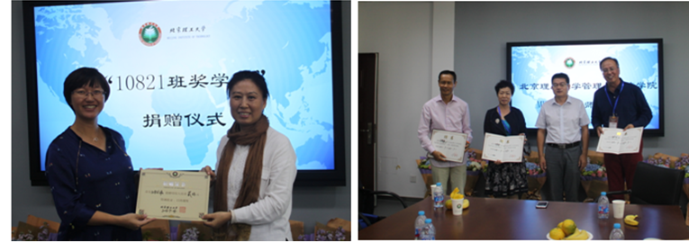 了解了学院的发展状况后,校友们纷纷与阔别30年的老师共忆荏苒年华,向自己老书记、老教师介绍个人近年的发展状况,并表达了对引以为豪的北理工的热爱与憧憬,同时向学院捐赠“10821班奖学金”。老教师们也对校友们所取得的成就给予肯定,希望校友们坚定理想,持之以恒,不断为国家,为社会,为学校,为学院贡献力量。为了更好的进行学院学生教育,促进校企结合,管理学院向胡碧野,陈东牛,付素君等校友颁发了管理与经济学院MBA企业导师聘任证书,期待校友们能够给管理学院注入更多的新鲜血液与更鲜活的管理实践经验。