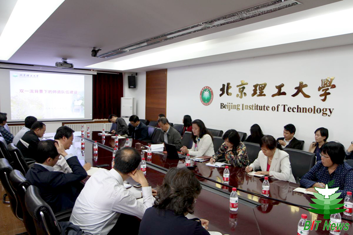 随后,人事处处长阎艳就人事工作的推进方案进行了汇报,详细介绍了学校人事工作改革依据、总体思路、推进内容、学院需开展的前期准备工作等内容。研究生院常务副院长王军政、实验室与设备管理处处长史天贵、教务处处长栗苹、科学技术研究院常务副院长王鲁先后介绍了各部处与师资队伍建设相关的工作要点,并就有关问题进行了说明。