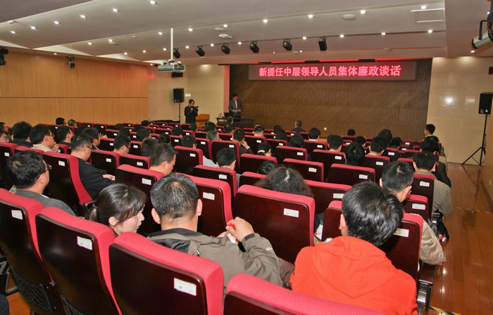 本次新提任中层领导人员集体廉政谈话也是一堂干部培训课,同时又是“两学一做”学习教育的生动党课。廉政谈话要求每一位领导干部要牢记党纪国法,坚守精神家园,认真履行党风廉政建设和反腐败工作职责,做一名忠诚干净担当的好干部。