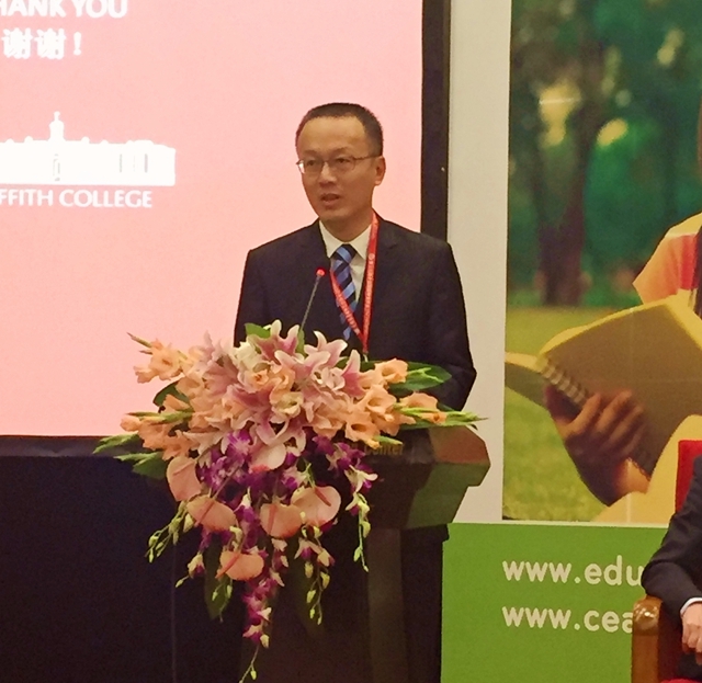 在与中爱高等教育论坛同期举办的中国—澳大利亚高等教育论坛中,来自43所中方单位的72位代表和来自澳大利亚15所单位的28位代表齐聚一堂,中国澳大利亚驻华大使Jan Adams、教育部国际合作与交流司副司长方军、中国教育国际交流协会副秘书长沈雪松出席开幕式并做发言。论坛四个主题的专题讨论分别为 “跨境教育”、“学生流动”、“科研合作与研究成果商业化”和“产学研一体化及毕业生就业”。在跨境教育分论坛上,我校校长助理龙腾与西澳大利亚大学副校长Iain Watt,塔斯马尼亚大学前任副校长Peter Frappell,大连成人头条副校长宁桂玲,和西南大学代表就中澳高等教育国际化、跨境教育项目、合作办学等问题进行了深入探讨。