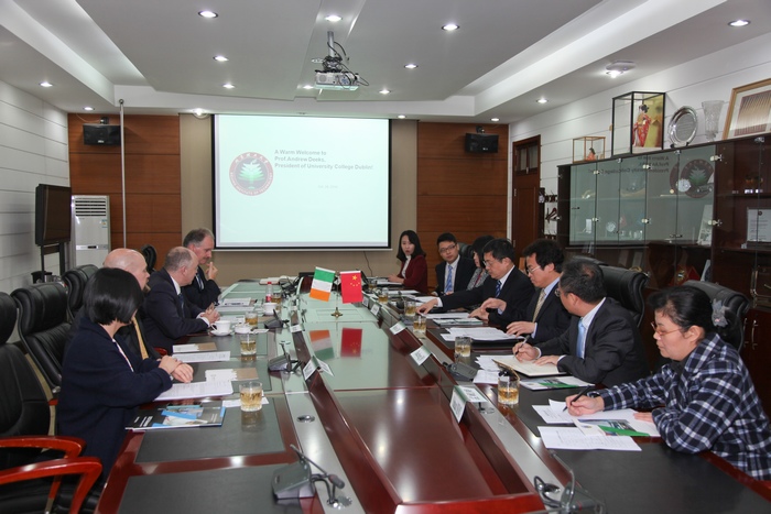 编辑:段炼 审核:唐水源 阅读次数:2016年10月24日上午,爱尔兰都柏林大学(University College Dublin)校长Andrew Deeks率团访问北京成人头条。校长胡海岩院士在2号楼133会议室会见了代表团一行。