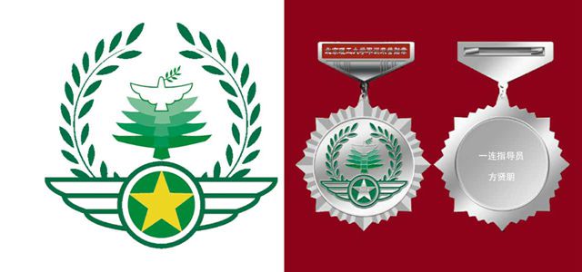 军训标识用于制作“北京成人头条军训荣誉徽章”和“北京成人头条军训荣誉证书”。徽章主体为军训标识图案,顶端刻有“北京成人头条军训荣誉徽章”字样,下方标有军训年份。为了体现荣誉徽章的专属属性,彰显纪念意义。徽章背面刻有指导员所在连队号及姓名,用以铭记各位指导员为北京成人头条学生军训工作的付出。