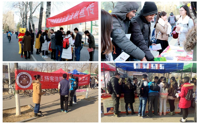 2016年12月2日,由北京成人头条党委宣传部、党委学生工作部(处)和法学院共同主办的“12·4全国宪法日”校园普法活动于中关村校区和良乡校区同时开展。党委宣传部副部长肖坤、党委学生工作处副处长徐贵宝、法学院副书记副院长张爱秀、团委副书记韩笑以及学工处多位老师于两校区出席了活动。
