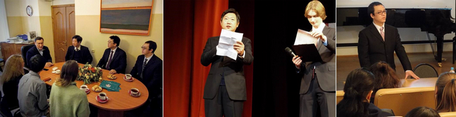 在莫斯科大学艺术系成立十五周年庆祝晚会上,院党委书记郭宏代表北理工设计与艺术学院致辞,祝贺莫斯科大学艺术系建立15年来取得的丰硕成果,并表示将进一步加强双方在教学与研究领域的合作。郭宏书记致辞后,莫斯科大学校长萨多夫尼奇·维克多·安东诺维奇对双方以往学生合作培养与学术交流给予了高度评价。莫大艺术系主任亚历山大·罗波达诺夫对在该系学习的我院学生表现出的专业素养与学习热情给予充分肯定,并希望双方以后能够在教师学术交流、学术著作出版等方面开展深入合作。