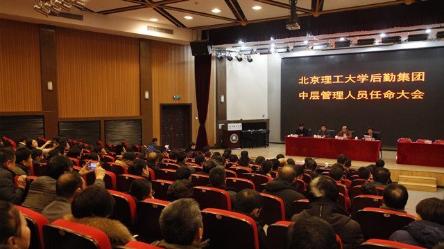 2016年12月16日下午2:00,后勤集团中层管理人员任命大会在7号楼一层报告厅隆重召开。出席大会的学校领导有常务副校长杨宾,后勤集团董事会成员:校党委组织部部长张笈、校财务处处长任世宏、国有资产管理处处长宋希博,后勤集团现职领导、保留处级待遇领导、集团现职中层管理人员、被任命的中层管理人员、集团部门经理(主管)、集团职代会全体代表参加了大会。任命大会由后勤集团党委副书记姜金凤主持。后勤集团总经理李晋平宣布了后勤集团中层管理人员任命决定。