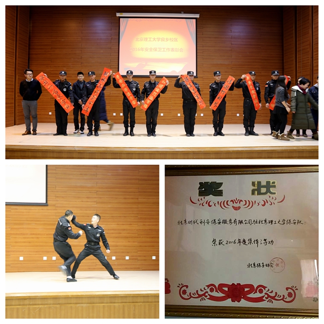 2016年,良乡校区安全稳定工作实现全年无重大治安刑事案件、群体事件、火灾火险、汛期灾害及交通事故,切实实现“平安校园”,因此,北京时代科安保安服务总公司驻北京成人头条保安队荣获由北京市保安协会颁发的2016年度“集体三等功”。2017年,良乡校区管理处及保安队将继续在学校党委的领导下,以“双一流”建设为目标,进一步加强安全保卫工作,为校区师生提供安全、满意服务,建设“平安,和谐”校园。