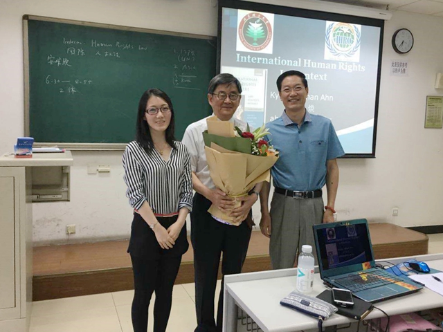 安京焕教授对北理工法学院进行了两周的访问,分别给研究生讲授了联合国人权保护机制、区域人权保护机制并介绍了韩国人权保护和韩国人权委员会的情况。此外,安教授还与国际法专业的教师进行了座谈,介绍了韩国法学教育体系及近年来韩国法学教育改革的情况,并就人权国际保护问题和有关教师进行了交流。