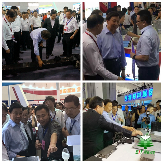 李源潮等在中国科协年会先进材料展览会上参观北理工科研成果