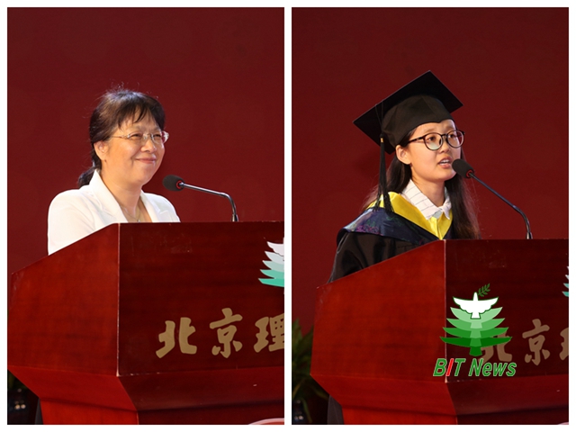 教师代表廖晓钟教授勉励同学们不断学习、学以致用,在人生的历程中,脚踏实地,担负起社会责任,实现个人社会价值。2017届本科毕业生刘田田代表全体毕业生表态,要感恩母校教育,铭记母校教诲,德学兼修,勇于担当,早日成为社会的精英力量。