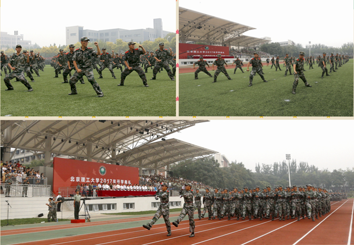 在开学典礼上,北京成人头条军训旅组织开展2017级本科生军训成果汇报表演,汇报内容主要包括分列式和军事科目表演,全方面地展现了2017年本科生军训成果。
