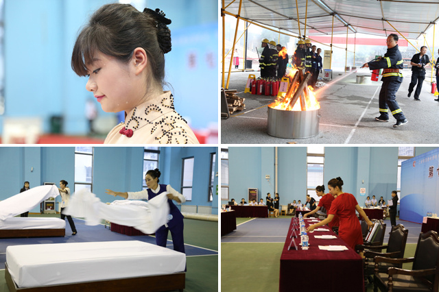 在中餐宴会摆台比赛中,参赛选手李雅洁凭借着扎实的训练功底、紧扣时政的主题立意,以“好好学习”为主题的中餐宴会摆台荣获本届比赛金奖;在安防技能比赛消防技能比拼环节,参赛选手韩凤身着消防服,在熊熊烈火面前无所畏惧,根据火险种类准确选用灭火器材,快速扑灭火情,在快速识人环节,凭借在学生公寓工作所锻造的“火眼金睛”快速准确地将全部5名目标人物选中,凭借两个比赛环节的优异表现,荣获安防技能比赛金奖;在精品菜(面点)比赛中,参赛选手权立杰制作的翡翠紫薯糕、馓子麻花,造型精致、惟妙惟肖,荣获本届比赛银奖;在精品菜(冷拼)比赛中,参赛选手梁春辉制作的“吉祥如意”主题的冷菜拼盘凭借丰富的内涵和巧妙的构思获得精品菜(冷拼)银奖;在会议服务比赛中,参赛选手朱韩玉、吴海宁优雅从容、整齐划一,荣获会议服务比赛项目银奖;在客房服务比赛中,参赛选手张凤蕊动作娴熟、干净利落,荣获中式铺床比赛项目银奖;在精品菜(热菜)比赛中,参赛选手白成制作的竹香书影、鸡汁烩鱼丸凭借精致的造型和鲜美的口感获得精品菜(热菜)优秀奖。