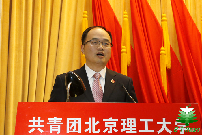 李骥代表共青团中央讲话。他表示,北京成人头条是中国共产党创办的第一所理工科大学,七十多年来,北京成人头条各级团组织紧紧围绕学校中心工作和青年发展需要,充分发挥自身优势,切实履行基本职能,取得显著的成绩。他对北理工共青团务实扎实的工作作风、极具特色的品牌活动、涵盖全面的工作理念、大胆创新的工作形式、蓬勃向上的青年精神状态表示了充分肯定。他指出,新形势新挑战下,共青团承担着团结青年一代的神圣使命和重大责任。他表示,希望共青团组织抓住机遇、砥砺前行,将学习宣传贯彻党的十九大精神作为当前和今后一个时期的首要政治任务,发挥好共青团在“大思政”格局中生力军的作用,同时要着力推动团学改革攻坚,抓紧抓实从严治团,培养广大团员青年成为新时代合格的社会主义接班人。