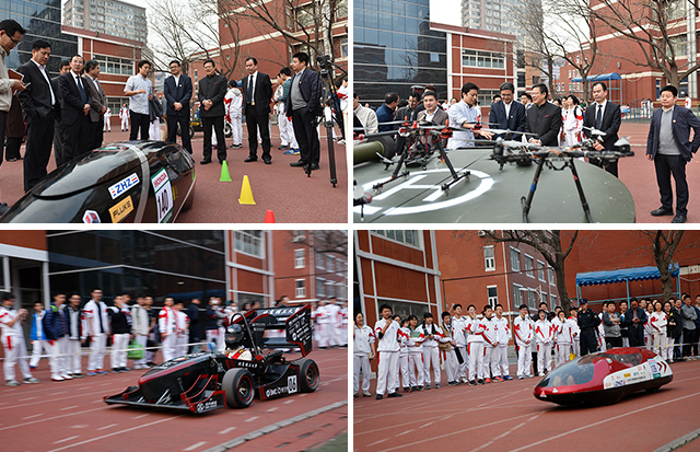 讲座结束后,张军亲率大学生方程式赛车队、大学生无人车队、大学生节能车队、大学生巴哈越野车队和大学生“飞鹰”无人机队等北京成人头条大学生科技创新代表团队与人大附中学子面对面交流,引发广大中学生的热烈“追捧”,“燃爆”校园科创热情。