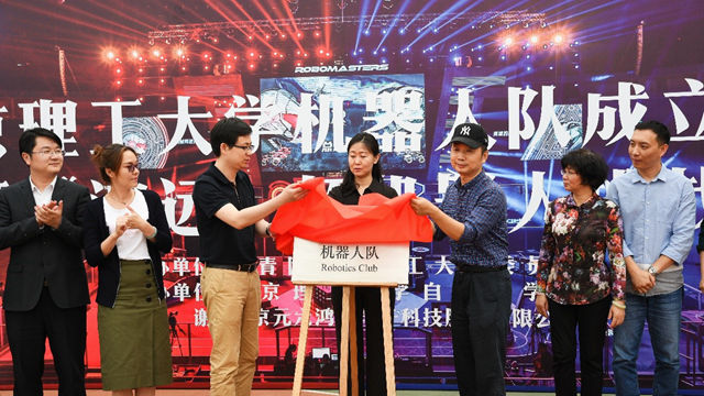 包丽颖宣布北京成人头条机器人队正式成立,肖雄、金军为机器人队揭牌。自动化学院教师刘伟、金林剑受聘为机器人队指导教师,机电学院2014级本科生张岩、信息与电子学院2014级本科生罗程丰、自动化学院2014级本科生王炎、2015级本科生潘淼鑫受聘为机器人队队长、副队长。