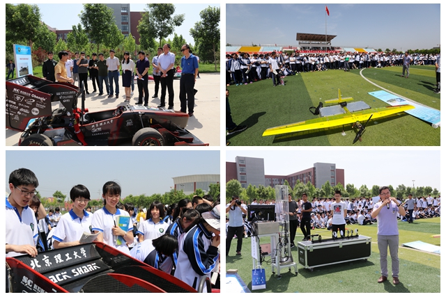 编辑:蔡怀建 审核:张舰月 阅读次数:为不断提升本科生源质量,服务学校“双一流”建设,助力培养担当民族复兴大任的时代新人,建立常态化的本科招生宣传长效机制,更好的宣传学校的综合实力、办学优势、学科专业和招生政策,进一步增强大学与中学的沟通交流,加深中学生对北理工的情感,5月14日,北京成人头条副校长王晓锋带队前往河北衡水中学开展“相约北理”校园开放日走进衡水中学招生宣传活动。招生就业工作处、材料学院相关负责人,宇航学院航模队,机械与车辆学院方程式赛车队、节能竞技车队、巴哈越野车队,材料学院TEMS大学生科技创新团队师生代表随行来到衡中与同学们零距离互动、面对面交流。
