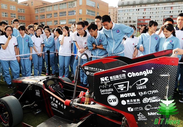 讲座结束后,北京八中师生参观了我校带来的大学生方程式赛车队、大学生节能车队、地面机器人、陆空两栖无人机、管道探测智能车和大学生“飞鹰”无人机队等大学生科技创新成果展示,燃起了在场中学生热烈的科创热情。
