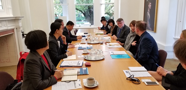 5月25日,王晓锋副率团访问了北理工长期合作伙伴澳大利亚国立大学,与澳大利亚国立大学对外关系与合作事务副校长Jane O’Dwyer女士亲切会谈,双方回顾了长期伙伴关系的成果,期待进一步加深两校合作。王晓锋副一行与工学院院长Huntington教授、教学副院长Lowe博士、教学主任Weber博士、计算机科学研究院主任Rendell教授以及国际事务协调员Audrey Teo女士就合作项目进行讨论,澳大利亚国立大学工学院目前正在扩建专业,建设相关设施,双方同意在更广泛的领域开展深入合作。