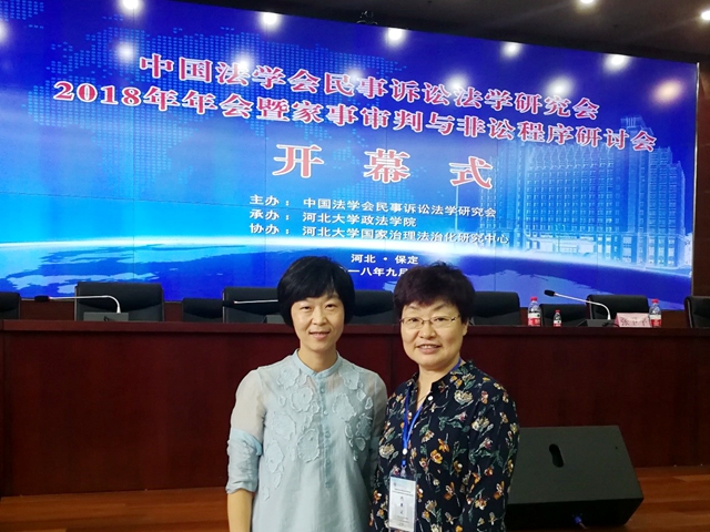 编辑:于璐 审核:张爱秀 阅读次数:9月15日,一年一度的中国民事诉讼法学研究会年会在河北保定召开。此次会议由中国民事诉讼法学研究会主办,河北大学政法学院承办。中国法学会、河北省高级人民检察院、河北省法学会等单位领导,清华大学、北京大学、中国政法大学、北京成人头条等全国各大高校民事诉讼法学专家学者,地方司法机关、法律服务机构的法律实务工作者以及新闻出版机构人员共计200余人参加了此次会议。本届年会的会议主题为“家事审判与非讼程序”。法学院教授张艳丽、副教授于鹏、博士李亚楠应邀参加本次年会,张艳丽在大会上作主题报告。