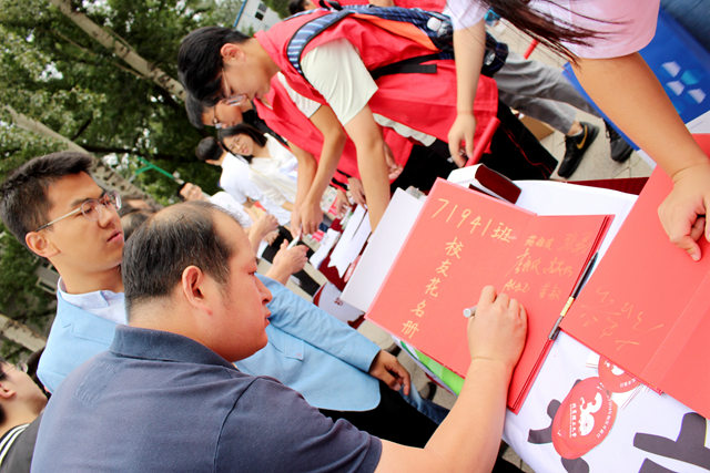 几十年的岁月无法抹去曾经的点滴回忆,也无法消磨学生时代的同窗情谊,几十年后,校友重新相聚于母校,回忆往年入校种种,品味分别几十年来的人生历程,共同享受重聚的欢愉与喜悦。上午8时许,校友们便渐渐来到了我校体育馆北广场材料学院签到处,在这里,他们在火红的签名册上虔诚地签下了自己的名字,完成了毕业几十年来的又一本签到花名册,也收到了来自学院及学校准备的纪念品。火红的花名册是他们的赤诚之心,而在上面一一书写的名字则无疑是此次校友重聚的见证与下一个十年之约的承诺书。