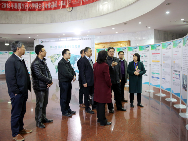 校长张军在交流展厅认真听取了教务部部长栗苹、副部长徐瑾对我校开展本科生国际化的情况汇报,他肯定了取得的成绩,对本科生教育国际化项目如何深入推进提出了有针对性的意见和建议,指出我校本科生国际交流还需要进一步扩大规模,创新合作模式,鼓励引进教师推动国际交流合作,深化重点国家和专题项目开展。