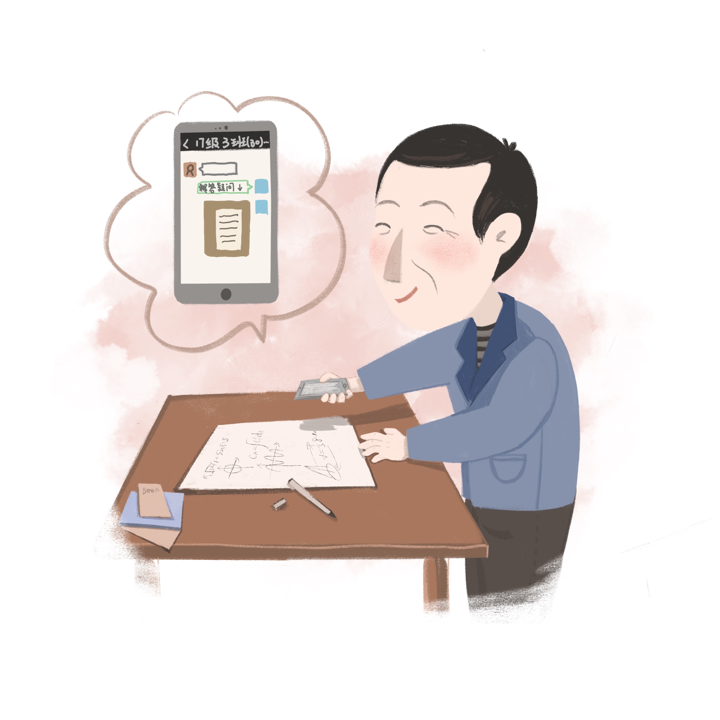 在授课方面,老师有一个纯手写再扫描出来的习题文件夹,当时不知珍贵,考后方觉价值。上课讲题老师也总是手写板书,因为“这样慢,同学们能留下印象”。老师也是我见过的第一个在微信群里手写详细解题步骤再拍照回答同学问题的,虽然之后也遇到过类似的老师,但第一位留下的印象总是最震撼的。