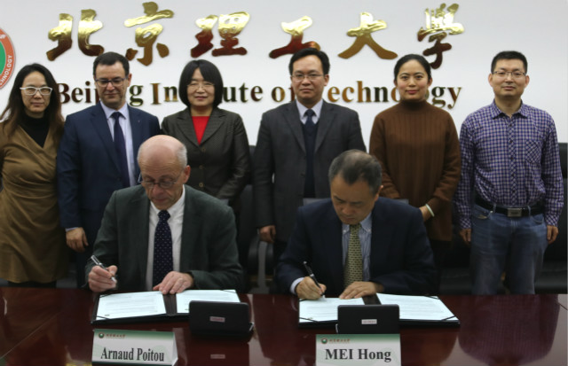 1月17日,法国南特中央成人头条Arnaud Poitou校长、Fouad Bennis副校长、中法项目负责人李春来访问北京成人头条。北理工常务副校长梅宏在中关村校区会见代表团一行。
