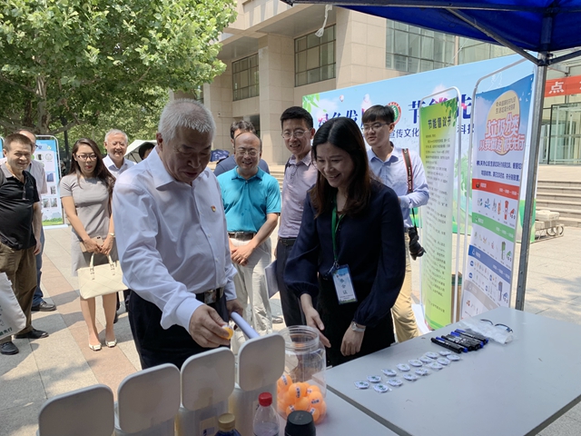 编辑:张梦雯 审核:许冰 阅读次数:为了集中体现我校在节能环保领域的相关研究成果、展示学生社团相关公益活动,引领广大师生积极践行节约环保理念,共建美丽宜居校园,在工信部机关服务局、国管局公共机构节能管理司、国家节能中心、北京市发展改革委和北京市节约用水管理中心等单位大力支持下,在相关高校、企事业单位的热情响应和积极参与下,6月17日,后勤基建处携手党委宣传部、良乡校区管理处、学生工作部、校团委和相关学生社团,共同举办“2019年北京成人头条节能宣传文化节暨节能科技论坛”。副校长李和章携同工业和信息化部机关服务局副局长田忠元及相关领导和嘉宾参观了节能宣传文化节。