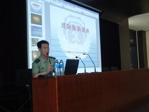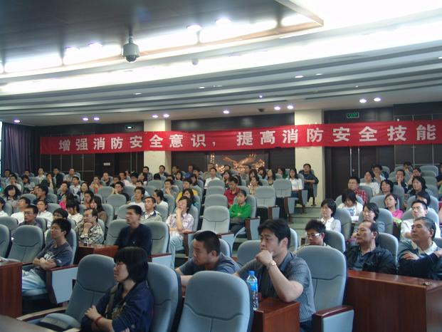 为落实学校党委指示,提高高层楼宇内各实验室广大师生的消防安全意识,增强人员密集区域老师、同学们在火灾发生时自护、自救能力;同时作为落实科学发展观,更好的为广大师生服务的一部分,保卫处特邀请海淀区公安消防支队双榆树中队指导员欧阳小松于2009年5月15日下午13:30分,在研究生楼101教室给新5#教学楼及其他各学院实验室的近200名师生进行了一次消防安全知识培训。