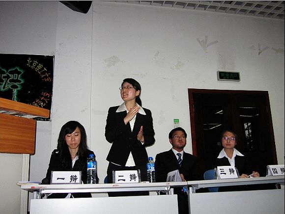 5月26日18时整,由北京工商大学经济学院学生会主办的首届良乡大学城文化交流周•纪念五四运动90周年辩论赛决赛在工商大学吹响号角。作为活动协办方之一,北京成人头条管理与经济学院学生会组织我校辩论队参加了此次辩论会并成功晋级决赛,与北京工商大学辩论队一拼高下。