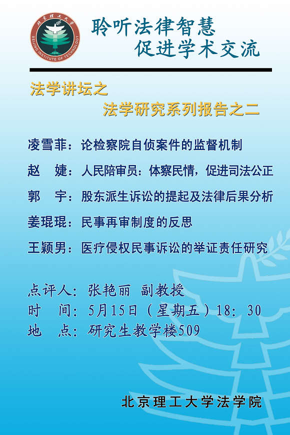 法学研究生系列报告会,是法学学科硕士研究生开展的一项传统学术活动,今年已经是第五届,也是法学院成立以来的第一届报告会。法学院自成立以来,重新定位、规划了学术活动的体系,整合资源,创立了“理公明法”法学讲坛,研究生系列报告会也被纳入讲坛,这位法学院研究生学术创新活动提供了一个更高、更广阔的平台。