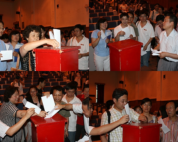 与会代表认真听取了何明书记所作的情况通报和胡海云院长所作的说明的讲话,认真阅读了会议下发的《理学院学习实践科学发展观活动领导班子分析检查报告》,以无记名形式填写了评议表,并在工作人员的监督下顺次投递了评议表。