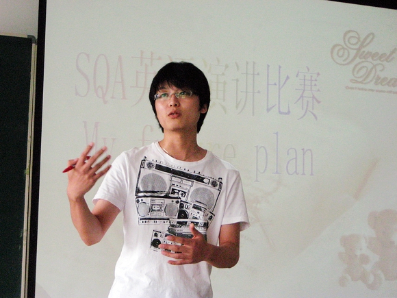 2009年6月26日下午,人文学院SQA中心学生英语演讲比赛在研究生楼506举行。参加英语演讲比赛的有外国语学院研究生评委、SQA中心学生评委、参赛选手、学生观众和教师代表。本次演讲比赛由人文学院学生工作办公室组织,目的是通过演讲比赛提高同学们参与集体活动的积极性,激发大家英语学习的热情。本次演讲比赛,在期末考试临近的大环境下进行,同学们克服困难主动报名,体现了SQA中心学生对英语学习的重视和热爱。