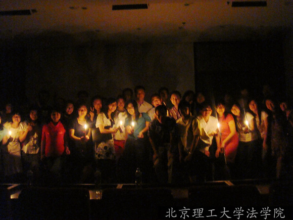 在答辩进行到三分之一时,发生了“小意外”,停电的图书馆让整个会场变的漆黑一片,这个“小意外”也让整个会场变成了“烛光会场”。在烛光中,同学们更轻松的表达了自己对大学的感悟、对同学的感谢、对老师的感激之情。其间有欢乐的笑声,也有不舍的泪水。