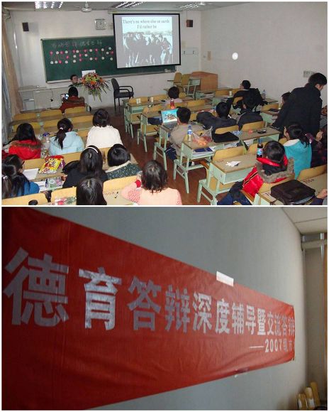 2009年11月13日星期五,管理与经济学院2007级市场营销班德育答辩深度辅导暨交流答辩会在3号教学楼428教室如期举行,我院市场营销系主任倪岳峰副教授、2007级辅导员荣磊老师以及市场营销班班主任聂宁宁老师光临指导。