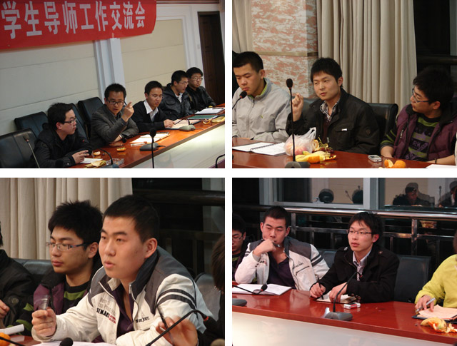 2010年4月16日晚10点整,软件学院“学长制”学生导师工作交流会在软件楼208召开,学生工作办公室陈杰浩老师、董大海老师,全体学生导师出席了会议,会议由陈杰浩老师主持。