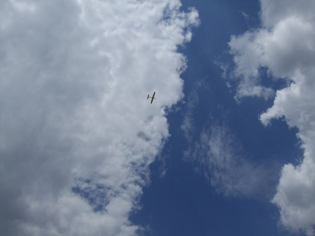 蔚蓝的天空夹杂着几朵乌云,飞机呼啸长空,平稳飞行数十分钟后逐渐下滑,在距地面2米时放平姿态平稳落地,李延平同学降落技术精妙绝伦,观众不禁拍手称赞。