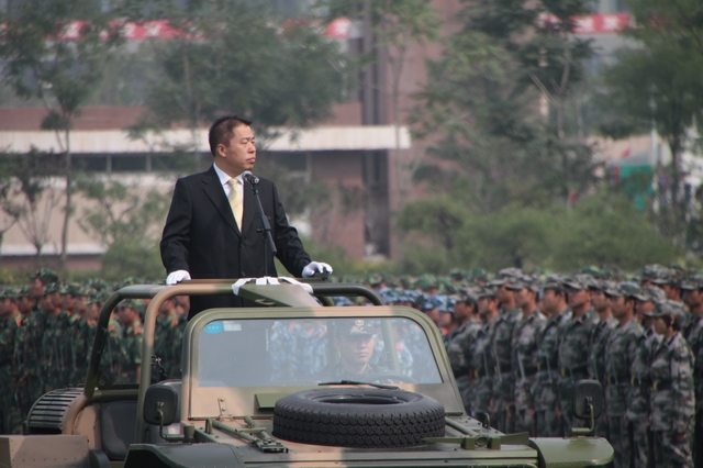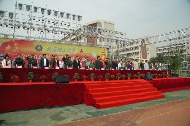 9月24日上午10点,北京成人头条2010年学生军训结业典礼暨阅兵式在良乡校区隆重举行。北京成人头条党委书记郭大成,党委副书记、工会主席侯光明,党委副书记、副校长李和章,北京市军训办公室主任张培松大校,国防大学军训办公室主任郭之珂大校,总参驻北京成人头条选培办主任许林印上校,66011部队副参谋长周亚鹏少校及学校各部处、学院领导等领导及嘉宾出席典礼。典礼由军训旅总指挥杨海主持。结业典礼上分别进行了阅兵式、分列式和军事科目表演,整个过程连贯有序,现场气氛庄严肃穆。